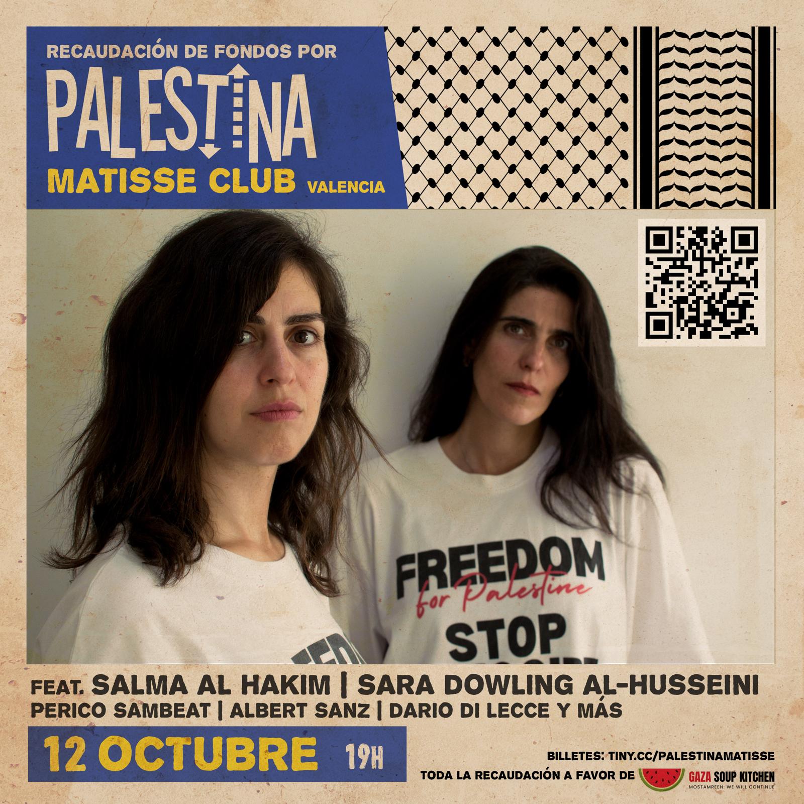 Matisse Club C/ de Campoamor, 60, València, SpainConcierto benéfico en Matisse Club: música y solidaridad por Palestina El próximo encuentro musical en Matisse Club, Valencia, promete ser una noche inolvidable. Las artistas Sara y Salma organizan un concierto solidario con un objetivo claro y urgente: recaudar fondos para el pueblo palestino. Todo lo recaudado irá íntegramente destinado a Gaza Soup Kitchen, una […]